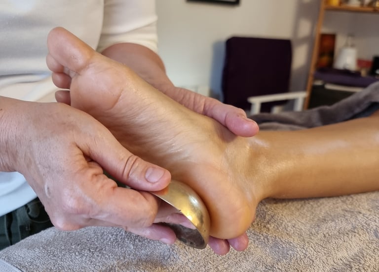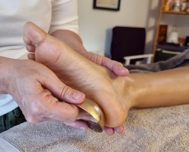 Le Padabhyanga est un massage ayurvédique des pieds, pratiqué à l’aide d’un bol Kansu, alliage traditionnel de plusieurs métaux, associé à du ghee ou une huile adaptée.